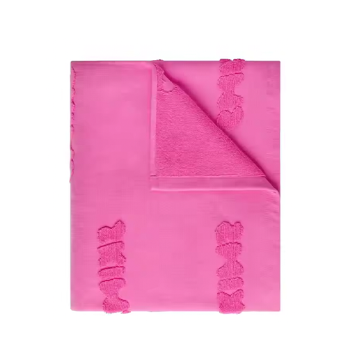 総パイル仕上げにより、プリントよりも高級感があります。また裏面も綺麗で、吸水性と耐久性があります。プリントに比べてコストが上がります。